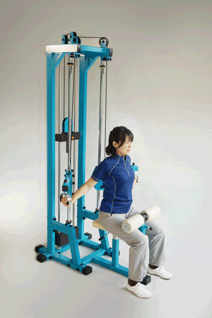 【主な作用筋】 ■広背筋 【スペック/機能】 ●サイズ:(約)W75×L123×H221cm ●重さ:(約)155kg ●負荷:(約)45kg トッププレート15kg、プレート5kg×6枚 ●生産国:日本製 ●付属品:DVD ※送料はお問合せください。